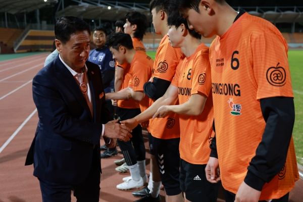 정영철 영동군수가 지난 22일과 23일 이틀간 선수단을 직접 만나 격려하며 선수들은 2025 영동세계국악엑스포를 널리 알리기 위한 준비를 마쳤다.