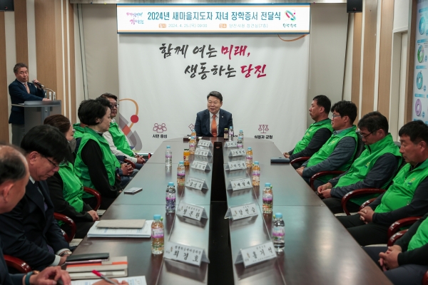 [충청뉴스큐] 당진시는 25일 시청 접견실에서 오성환 당진시장, 한민석 새마을운동당진시지회장, 새마을지도자 등이 참석한 가운데 2024년 새마을지도자 자녀 장학증서 전달식을 개최했다.