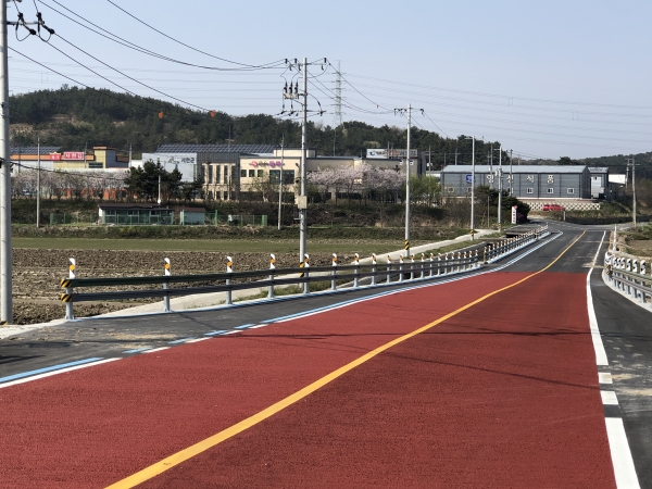 이에 군은 설계, 공사 등 총사업비 6억원을 투입해 2023년 5월 착공에 들어갔으며 왕복2차선에 인도를 확보해 지역주민들에게 쾌적한 교통환경제공과 관내 사업자들에게 편리를 제공했다.