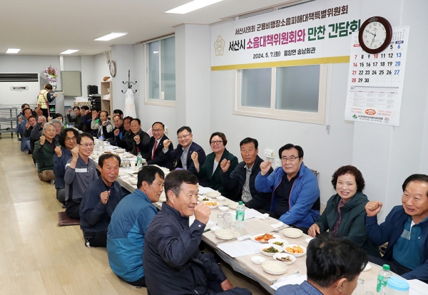 [충청뉴스큐] 서산시의회 군용비행장 소음피해대책특별위원회는 7일 오후 6시 30분경 음암면에 위치한 관내 식당에서 5월 가정의 달을 맞아 소음특위 위원들을 위로하고 소통의 장을 마련해 소음피해 현안사항에 대한 의견 공유 및 향후 공동대응 방안 등을 모색하기 위한 만찬 간담회를 개최했다.