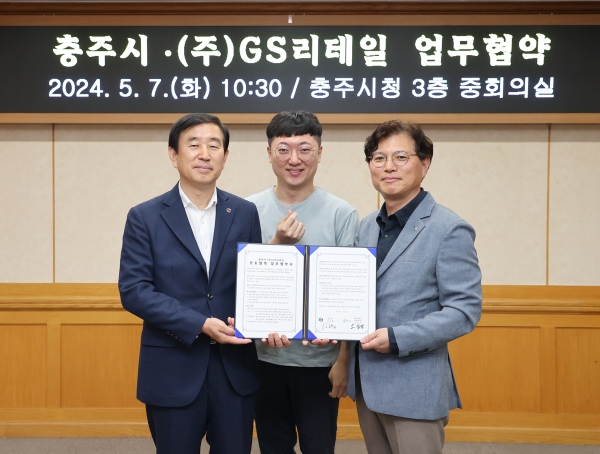 지난 7일 충주시청 3층 중회의실에서 ㈜GS리테일 오진석 부사장, 조길형 충주시장, 김선태 주무관 등 주요 관계자들이 참석한 가운데 협업 상품개발을 위한 업무 협약을 체결했다고 밝혔다.