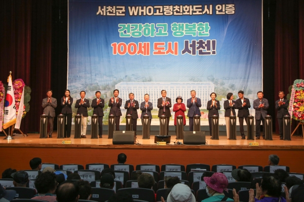 [충청뉴스큐] 서천군이 지난 8일 서천 문예의전당에서 어르신 1000여명이 참석한 가운데 세계보건기구 고령친화도시 인증 선포식을 개최했다.