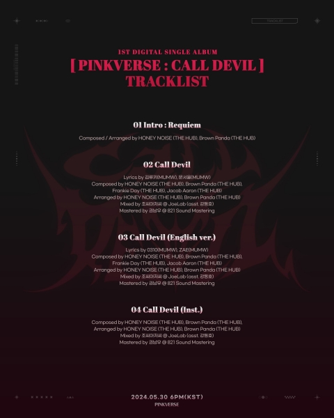 핑크버스는 지난 20일 공식 SNS 채널을 통해 데뷔 디지털 싱글 ‘Call Devil’의 트랙리스트를 공개했다.