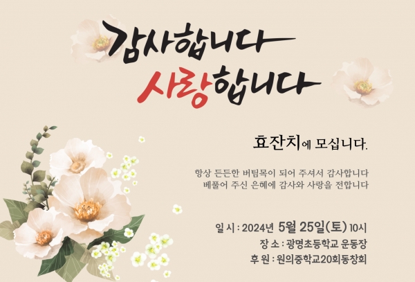 효잔치는 원의중학교 총동문회에서 주관하고 원의중학교 제20동창회에서 후원해 진행된다.