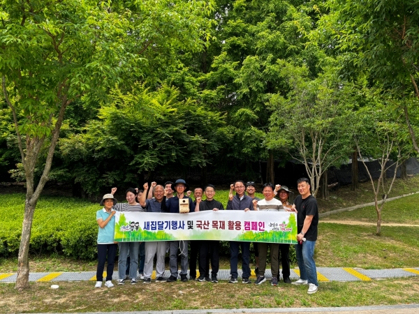 [충청뉴스큐] 논산시가 지난 26일 논산시민가족공원 일원에서 국산 목재를 활용한 새집 달아주기와 국산 목재 홍보 캠페인을 개최했다고 밝혔다.