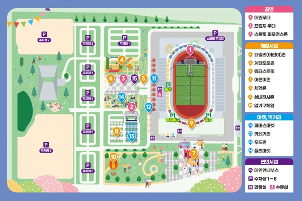 또한 에어짚라인, 공기 놀이터, 드론 축구나 로봇 사격 게임, FC충주 선수들이 운영하는 축구 체험, 머그컵이나 키링 만들기 체험 등 아이들을 위한 놀거리를 패밀리 존이나 먹거리 존에 다채롭게 준비했다.