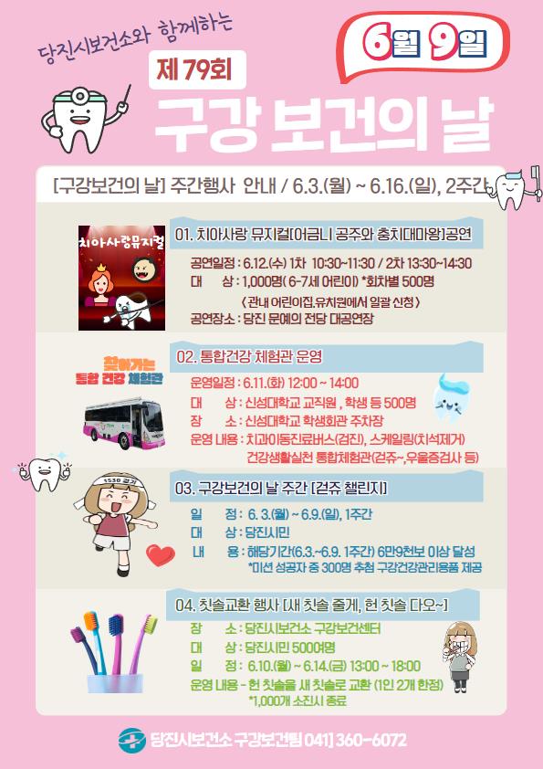 [충청뉴스큐] 당진시보건소는 ‘제79회 구강보건의 날’을 맞아 다양한 행사를 진행한다고 밝혔다.