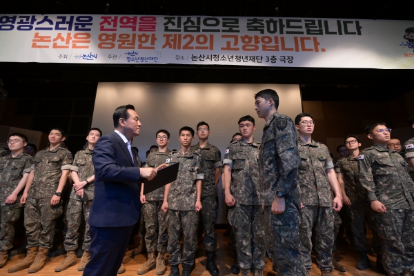 명예시민이 된 한 장병은 “논산이 국방의 의무를 다하기 위해 지나가는 지역이 아니라 인연을 맺은 제2의 고향으로 다가온다”고 소감을 밝혔다.
