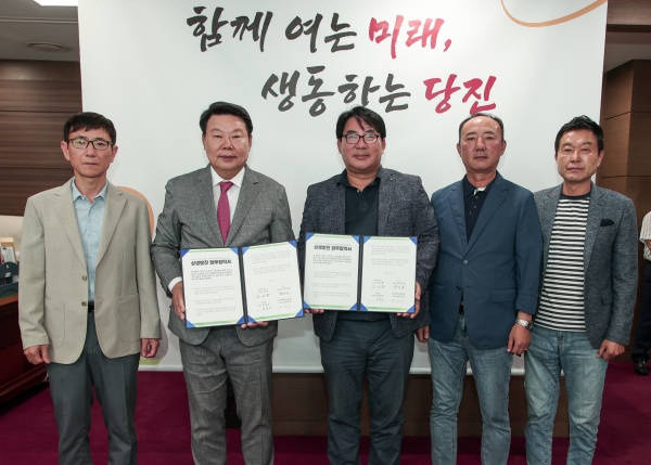 [충청뉴스큐] 당진시가 지난 5월 31일 당진시청에서 ㈜조이, 당진축협, 농협해나루조합공동사업법인과 함께 당진 농산물 공급 확대를 위한 상생발전 업무협약을 체결했다.