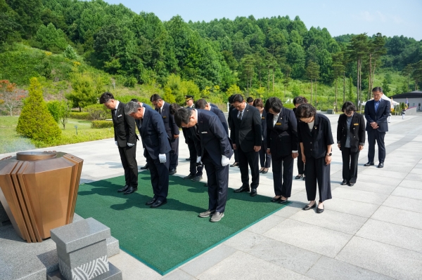 [충청뉴스큐] 충북 괴산군의회 신송규 의장을 비롯한 의원들과 직원들은 지난 10일 6월 호국보훈의 달을 맞아 관내 국립괴산호국원을 찾아 순국선열과 호국영령의 넋을 기리며 참배했다.