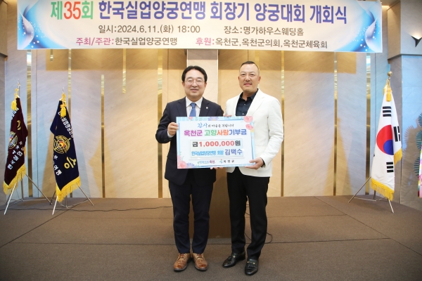 지난 1월 제26회 한국실업양궁연맹 회장기 실내양궁대회 때도 김 회장은 옥천군에 고향사랑기부금 100만원을 기탁한 바 있다.