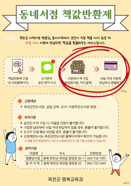 [충청뉴스큐] 옥천군민도서관이 관내 지역 서점과 협력해 ‘책값반환제’ 서비스를 제공한다.