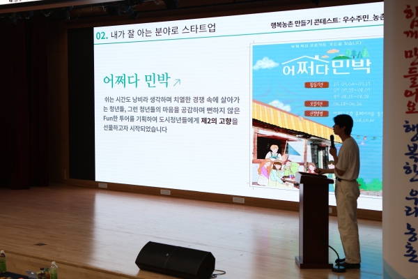충청남도에서 주관하는 이번 콘테스트는 △마을만들기 △농촌 만들기 △우수활동가 △농촌지역 창업가 총 4개 분야별 최고의 모델을 발굴하고자 추진했다.