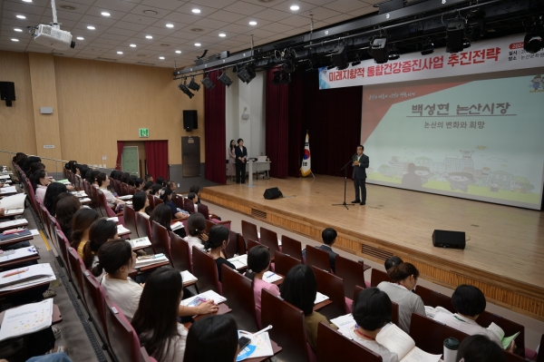 [충청뉴스큐] 논산시는 지난 21일 논산시보건소 직원 120명을 대상으로 미래지향적 통합건강증진사업 추진전략 및 상반기 평가 워크숍을 개최했다고 밝혔다.