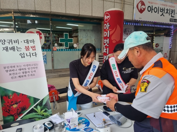 군 보건소는 이날 올바른 약물 복용법, 가정 내 폐의약품 배출방법 등 실생활에 필요한 의약품 안전사용수칙을 안내하고 불법 마약류 퇴치 및 24시 마약류 중독 전화상담센터에 대한 홍보 활동을 펼쳤다.