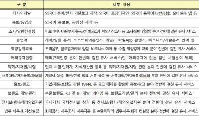 특히, 수출 역량이 부족한 내수기업 및 수출 초기기업에 수출전략 등 5개 분야 이상 서비스가 가능한 종합서비스 수행기관 5개사와 해외에서 현지 시장조사 및 바이어 발굴에 도움을 주는 해외수행기관 11개사가 참여해 중소기업들의 관심이 집중됐다.