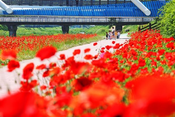 올해 처음 시도한 빨간맛 페스티벌의 백미인 동진천과 성황천 변 100만 송이 꽃양귀비 장관과 어우러진 금계국 및 백일홍, 메리골드 등은 인생사진 명소로 각광받았다.