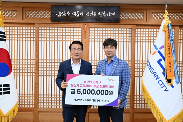 이에 대해 백성현 논산시장은 "신계철 대표님의 꾸준한 고향사랑 실천에 깊은 감사를 드린다”며 "출향 인사의 관심과 사랑이 논산 발전의 큰 힘이자 지역 청년들에게 희망과 자부심을 불어넣어 줄 것”이라고 말했다.
