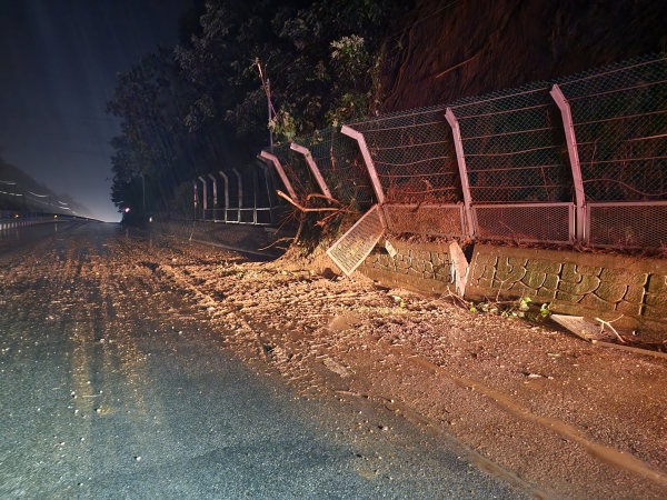 당진경찰서 석문지구대는 지난 8일 20시경 정미면 덕마리 32번 국도상에서 “토사가 밀려 나와 2차로를 덮었고 펜스가 넘어지기 직전이다”는 신고를 받고 현장으로 출동해 즉시 교통 통제에 나섰으며 당진시청 및 산림청, 국도관리청에 연락해 신속한 조치를 이끌어내 추가 산사태 및 교통사고 피해 발생을 예방했다.