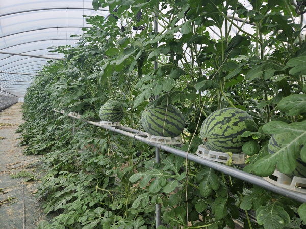 하지만 포기하지 않고 올해 또 한 번의 도전 끝에 수박 수직재배에 성공하는 결실을 이뤘다.