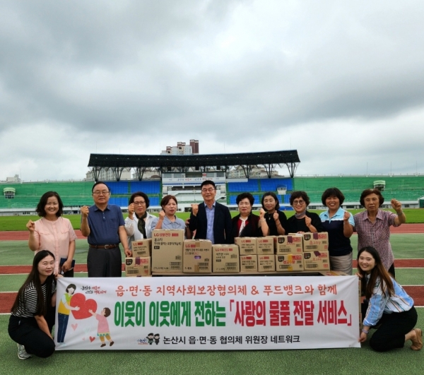[충청뉴스큐] 논산시 읍·면·동 지역사회보장협의체가 19일 ‘이웃이 이웃에게 전하는 사랑의 물품 전달 서비스”사업을 추진했다.