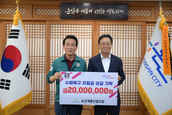 이 날 논산시청을 방문한 신현호 조합장은“갑작스러운 집중호우로 큰 피해를 입은 논산시민에게 조금이나마 힘이 되고자 기부금을 준비했다”며 “앞으로도 지역 사회의 일원으로 어려움을 겪는 시민들을 위해 여러 활동을 이어 나갈 것”이라고 전했다.