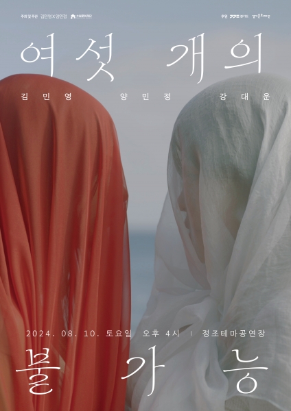 [충청뉴스큐] 수원문화재단은 경기문화재단이 지원하는 ‘2024 경기예술지원’ 선정단체 김민영과 양민정이 선보이는 다원예술공연 ‘여섯 개의 불가능’이 8월 10일 토요일 오후 4시 정조테마공연장에서 선보인다.