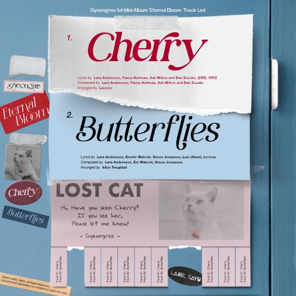 트랙리스트 이미지 속 자신의 반려묘 ‘Cherry’를 찾는 경리의 전단지가 이번 신보 콘셉트에 대한 궁금증을 자극하는 한편 솔로 아티스트로서 보여줄 그의 아이덴티티는 무엇일지 벌써부터 팬들의 관심이 쏠리고 있다.