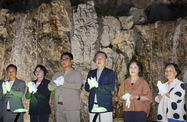 [충청뉴스큐] 충북 괴산군은 10일 괴산군 검승리 일원에서 괴강폭포 준공식을 개최했다.