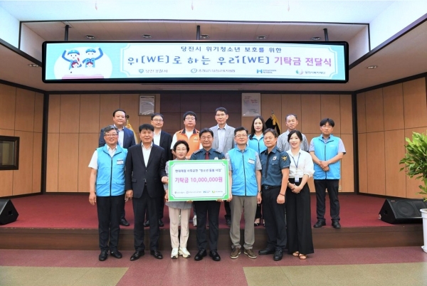 [충청뉴스큐] 당진경찰서는 13일 당진경찰서 아미마루에서 위기청소년 보호·지원을 위한 ‘위로 하는 우리’ 기탁금 전달식을 가졌다.