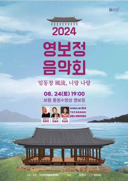 [충청뉴스큐] 보령시는 오는 24일 토요일 오후 7시 오천 충청수영성 영보정 특설무대에서 2024 영보정 음악회‘임동창 風流, 너랑나랑’ 공연을 개최한다고 밝혔다.