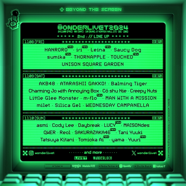 뿐만 아니라, 10월 초 최종 라인업 공개도 예고하고 있어 ‘원더리벳 2024’의 예매 열기는 더욱 뜨겁게 달아오를 전망이다.
