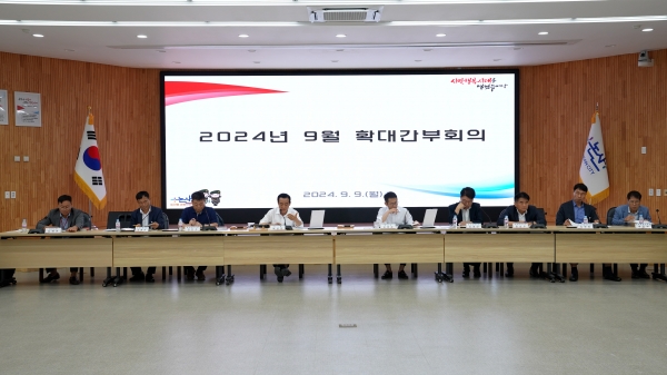 논산시는 9일 시청 회의실에서 주요 간부 70여명이 모인 가운데 ‘9월 확대간부회의’를 개최했다.