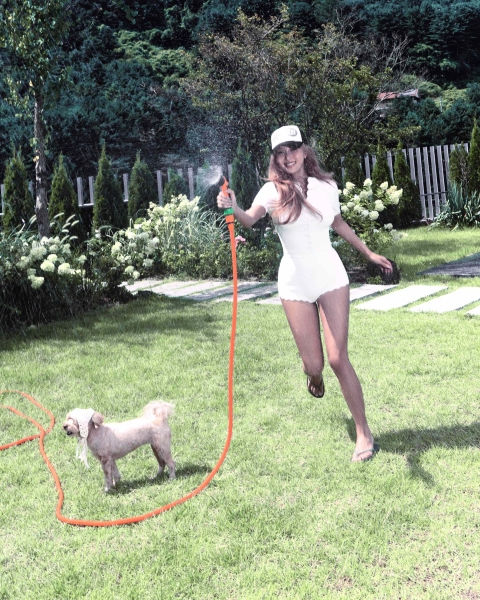 화사는 앨범명 ‘O’를 형상화한 튜브 위에 누워 고혹적인 아우라를 풍기는가 하면, 초록빛 마당을 배경 삼아 자유분방한 에너지를 발산하며 싱그러운 비주얼을 완성했다.
