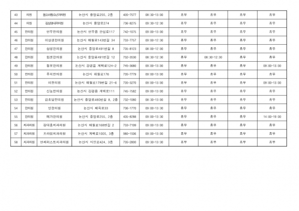 또한, 문여는 병·의원 57개소, 약국 48개소 및 논산시보건소도 계속 운영한다.