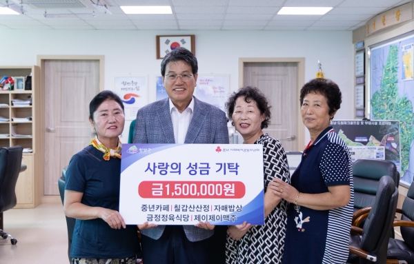 청양읍에 위치한 중년카페, 제이제이맥주, 자매밥상,과 정산면 칠갑산산정, 비봉면 금정정육식당 5곳은 “이번 고추구기자문화축제 기간 군의 많은 지원 덕분에 향토음식점을 수월하게 운영할 수 있어 고마운 마음에 수익금의 일부를 기부하게 됐다”며 “명절을 앞두고 어려운 이웃들이 즐거운 명절을 보낼 수 있길 바란다”고 말했다.