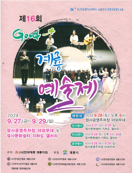 [충청뉴스큐] 계룡시는 오는 27일부터 29일까지 3일간 엄사공영주차장 야외무대와 엄사문화쉼터 지하도 갤러리에서 ‘제16회 Good 계룡예술제’를 개최한다고 전했다.
