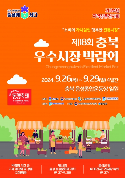 [충청뉴스큐] 충북 도내 전통시장의 우수상품을 한자리에서 만날 수 있는 ‘제18회 충북우수시장박람회’ 가 9월 26일 오후 2시 개막식을 시작으로 29일까지 나흘간 음성종합운동장 일원에서 열린다.