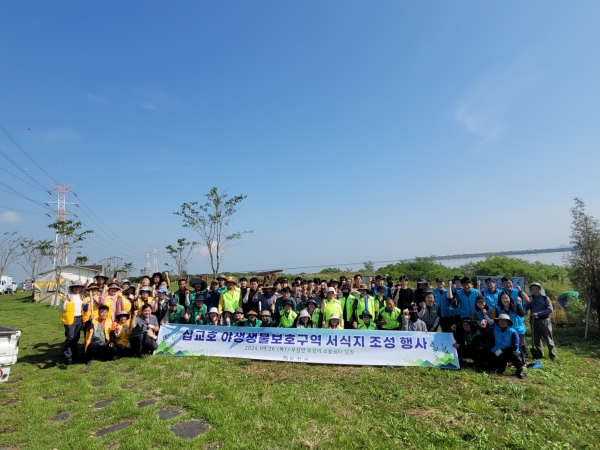 [충청뉴스큐] 당진시는 26일 삽교호 야생생물 보호구역 내 소들쉼터에서 주민, 시민단체, 기업체와 함께 서식지 조성을 위해 나무심기 행사를 했다.