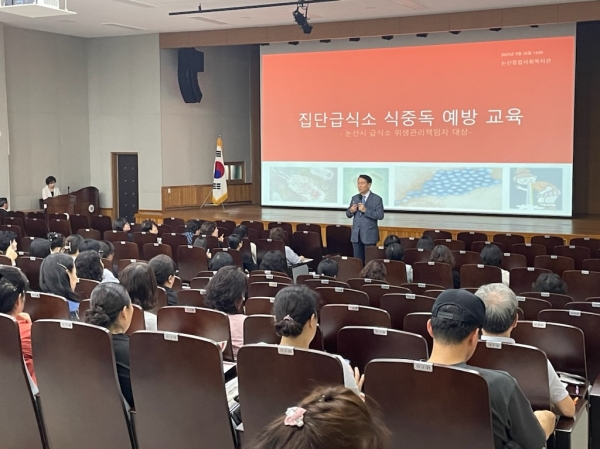 [충청뉴스큐] 논산시는 지난 26일 종합사회복지관 3층 민방위교육장에서 학교, 유치원, 어린이집 집단급식소 관계자 200여명을 대상으로 식중독 예방 교육을 실시했다.