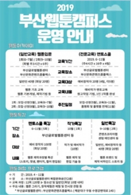 [충청뉴스큐] 부산시와 부산정보산업진흥원은 지역 웹툰 창작자 양성과 웹툰문화 확대를 위해 ‘2019년 부산웹툰캠퍼스사업’을 추진한다.