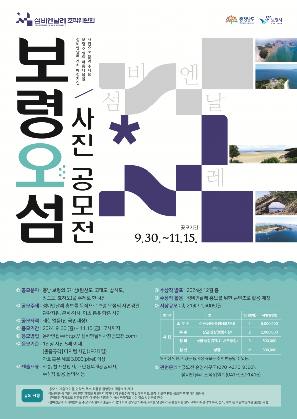 [충청뉴스큐] 섬비엔날레조직위원회는 오는 11월 15일까지 섬비엔날레 브랜드 개최지 홍보를 위해 충남 보령의 5개 섬을 주제로 사진 공모전을 진행한다.
