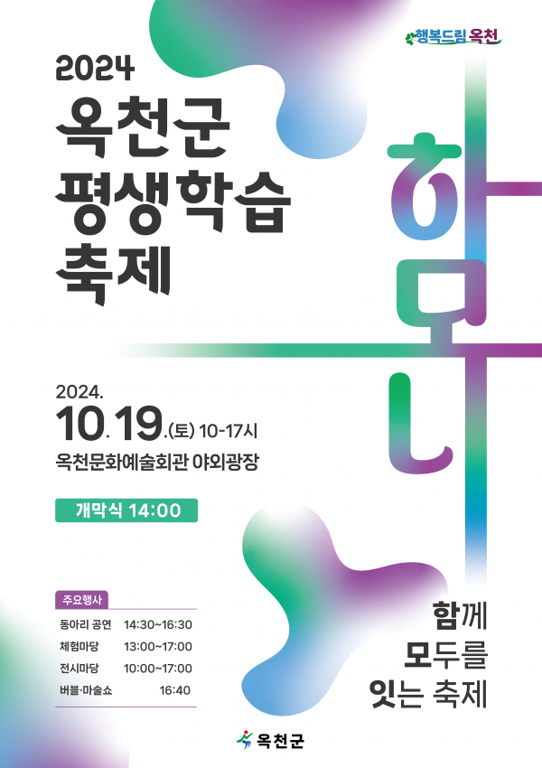 [충청뉴스큐] 옥천군이 오는 19일 옥천문화예술회관 야외광장에서 ‘2024 옥천군 평생학습축제’를 개최한다.