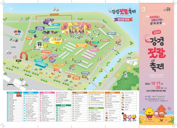 ‘강경젓갈과 상월고구마는 찰떡궁합’ 이라는 부제로 진행되는 이번 축제는 볼거리와 먹거리, 즐길거리 등 3박자를 고루 갖춰 총 5개 분야 60개 부대 행사가 준비되어 있다.