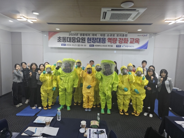 [충청뉴스큐] 보령시보건소는 지난 21일 보령베이스에서 생물테러 초동대응요원 17명을 대상으로 생물테러 발생 시 신속·정확한 대응 역량을 높이기 위한 생물테러 대비·대응 소규모 모의훈련을 실시했다.