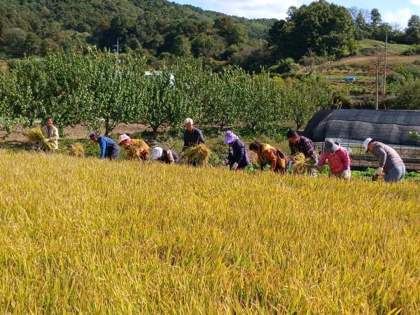 옥천 교평리 강줄당기기 보유단체로 인정된 옥천 교평리 강줄당기기 보존회는 지난 20일 강줄당기기의 재료로 사용할 볏짚 확보를 위해 청산면 교평리 일원의 논에서 벼 베기를 실시했다.