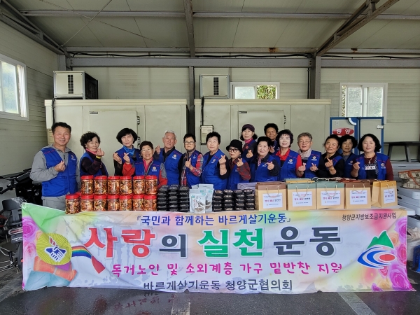 한편 바르게살기운동 청양군협의회는 사랑의 고추장 나눔 봉사, 청년봉사단, 이·미용 재능기부, 학교폭력 예방 캠페인 활동 등 따뜻한 지역사회 만들기에 적극적으로 동참하고 있다.