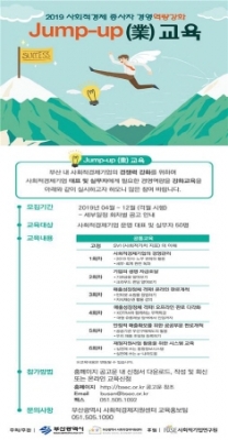 지난해 12월 사회적기업, 마을기업, 자활기업, 협동조합을 대상으로 설문 조사한 결과, 종사자 대부분이 역량강화가 필요하다는 인식을 모두 같이하고 있어, 격월제로 총 6회에 걸쳐 사회적경제 종사자 역량강화 교육인 ‘Jump-up 교육’을 진행한다.