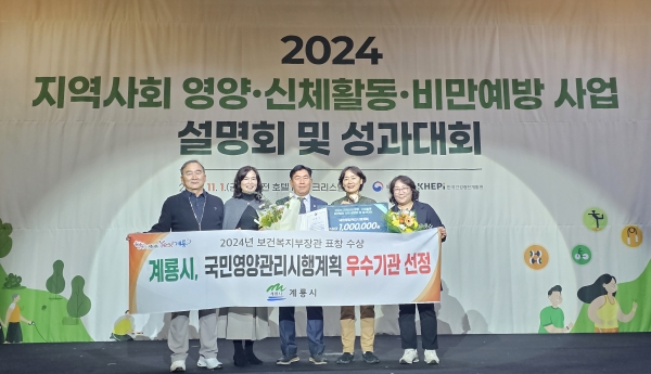 [충청뉴스큐] 계룡시는 지난 11월 1일 보건복지부가 주관한 2024년 국민영양관리시행계획 평가에서 우수기관으로 선정돼 보건복지부장관 표창을 수상했다고 밝혔다.