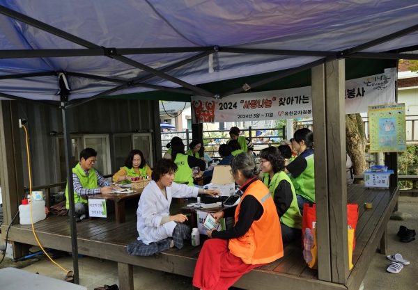 지난 4월 안남면 지수2리 마을회관에서 봉사를 시작해 청산면 하예곡리 마을회관까지 읍·면 1개소씩 총 9개 마을에서 봉사활동이 진행됐다.